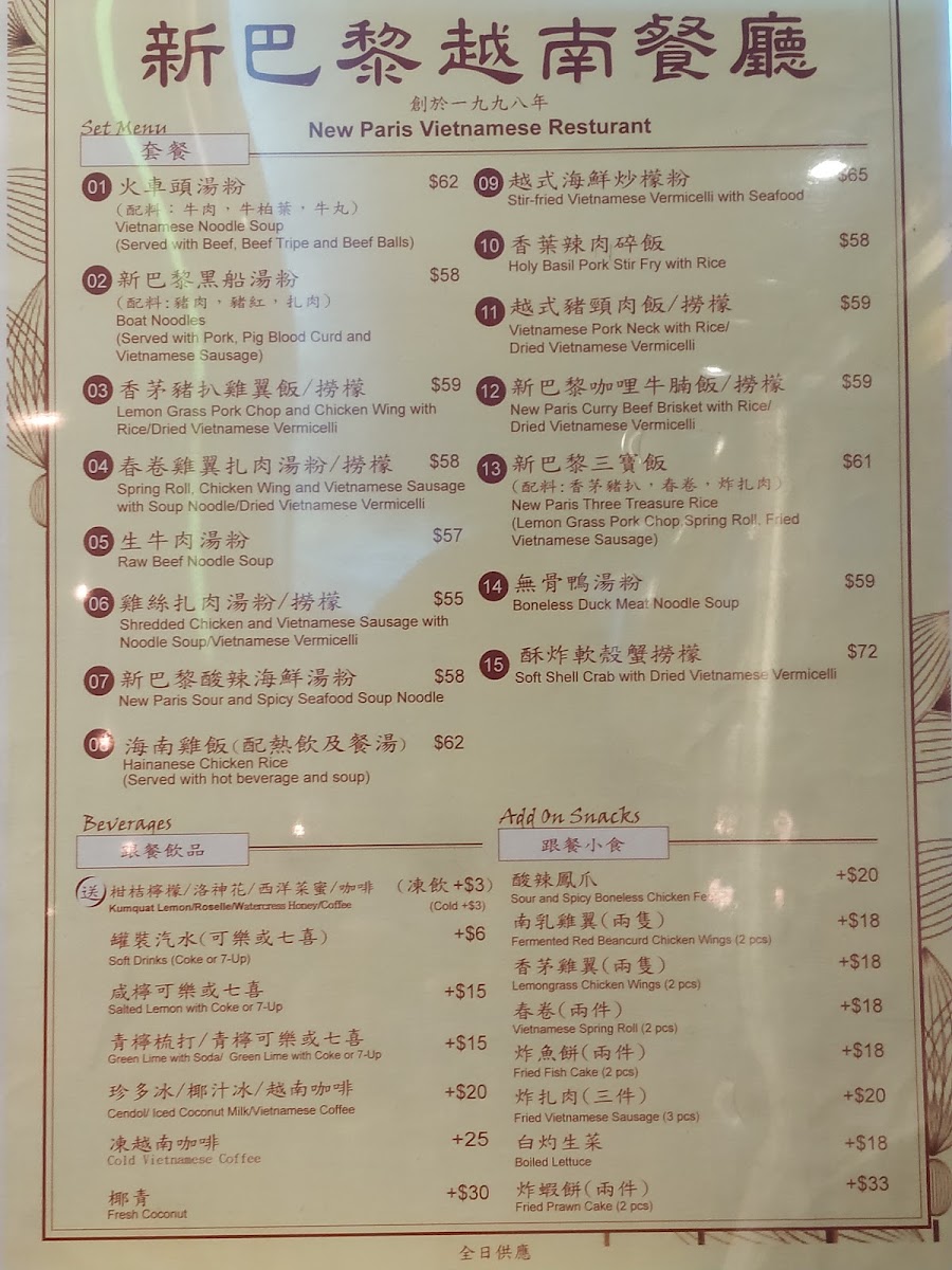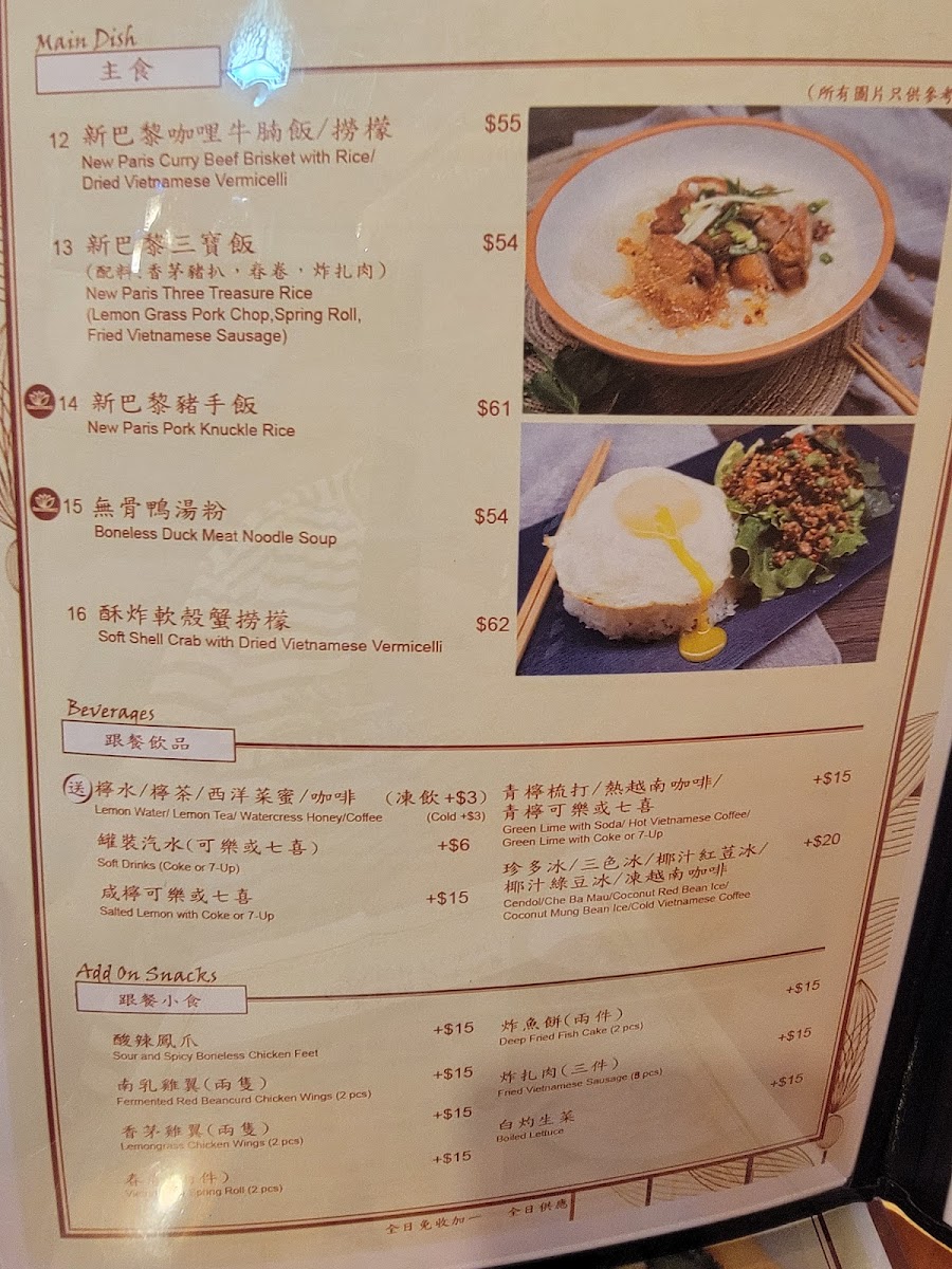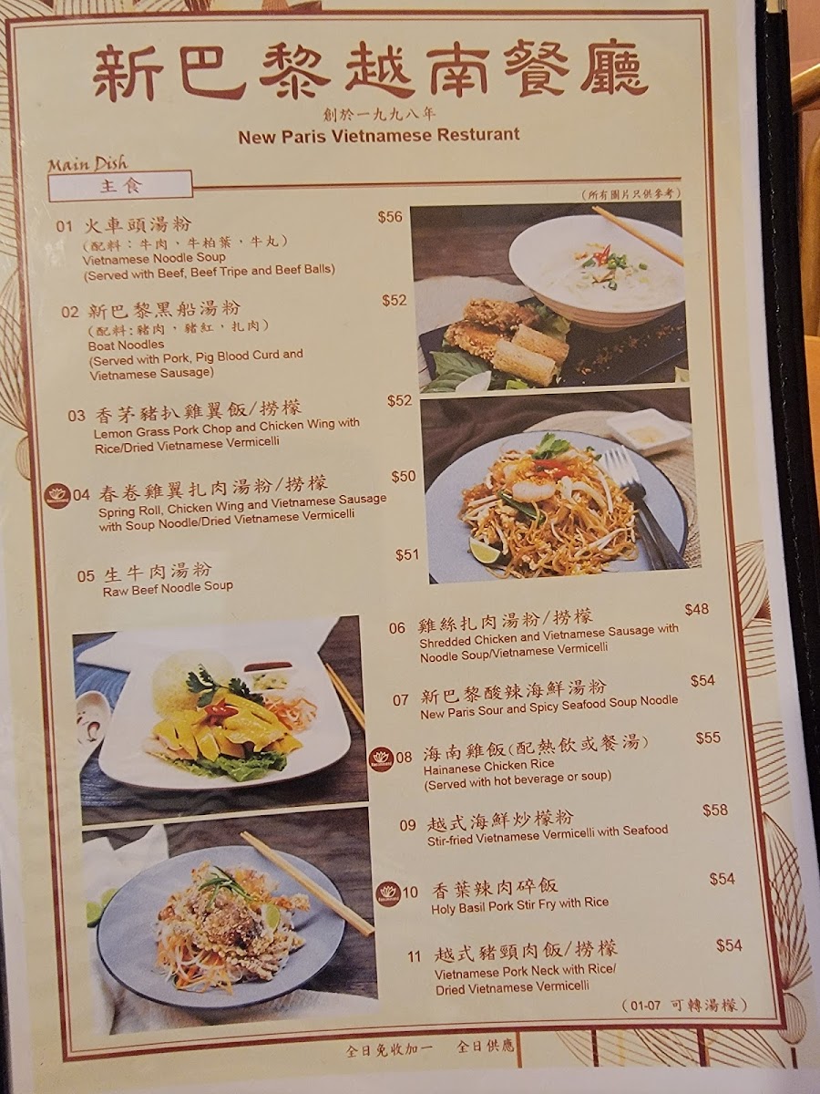 No matter your choice, each dish reflects the essence of Vietnamese cuisine, making New Paris Vietnam Restaurant a must-visit for anyone craving authentic flavors in Hong Kong.